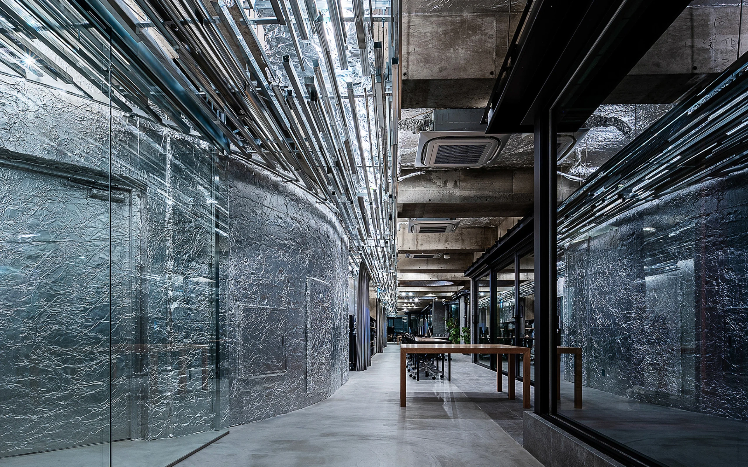 Today, a large quantity of light-gauge steel frames generated at demolition sites is still being disposed of. By repurposing these steel frames as materials for the interior design of our office, we have demonstrated that upcycling construction waste can be an effective design approach to mitigate the impact of construction work on the environment around the world.